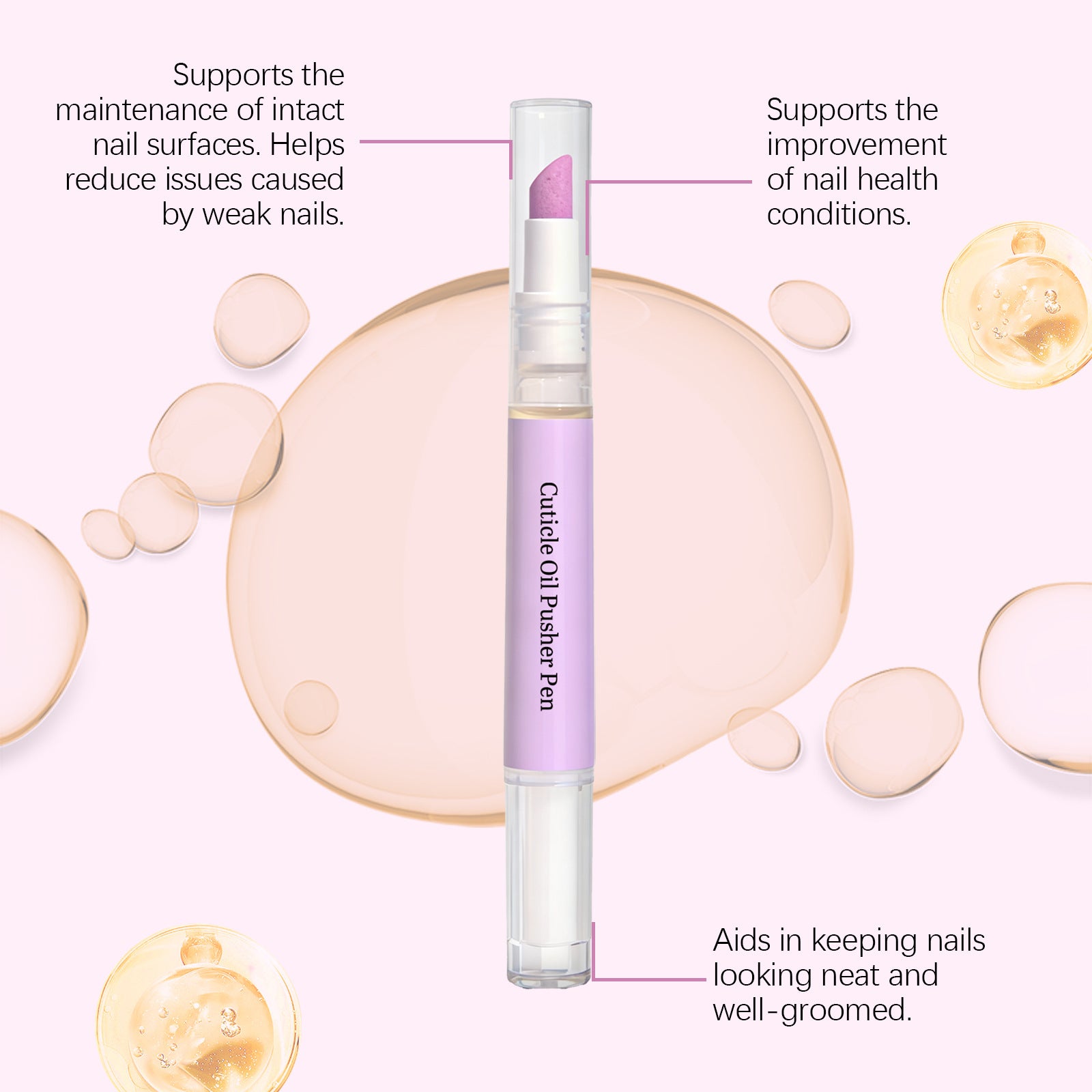 A convenient 2-in-1 nail care kit featuring a nourishing cuticle oil pen that hydrates and strengthens nails, paired with a precision cuticle pusher for clean, salon-style cuticles at home. Perfect for daily nail maintenance and travel-friendly.
